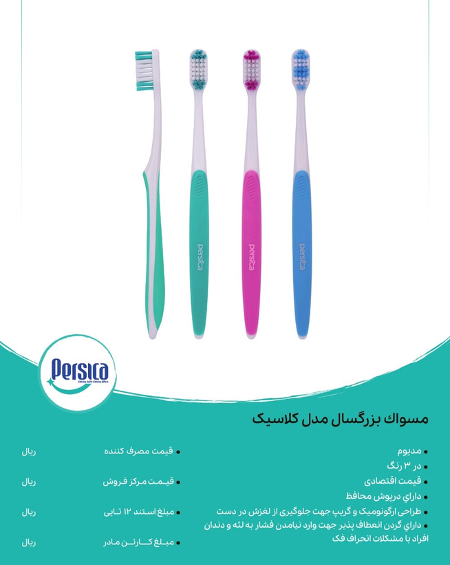 مسواک بزرگسال پرسیکا مدل کلاسیک ، بسته ۱۲ عددی
