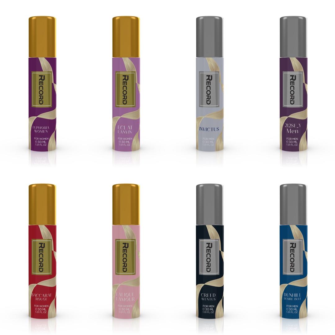 در هر جعبه ۲۴ عدد ادکلن جیبی ۳۰ میل با استند قرار دارد . هر جعبه شامل ۱۲ رایحه و از هر رایحه دو عدد درون جعبه میباشد .رایحه های باکارات رژ، آلور هوم ، اینویکتوس ، ۲۱۲ زنانه و مردانه ، لاگوست ، کوکو چنل ، اکلت ، گود گرل، ساواج ، دانهیل، کرید اونتوس.: در رایحه های زنانه و مردانه