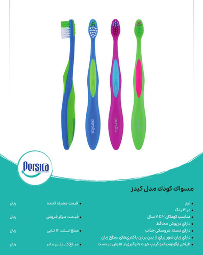 مسواک کودک پرسیکا مدل کیدز ، بسته ۱۲ عددی