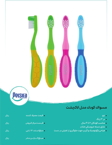 مسواک کودک پرسیکا مدل لاک پشت بسته ۱۲ عددی