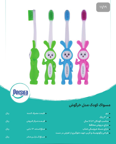 مسواک کودک پرسیکا مدل خرگوش ، بسته ۱۲ عددی