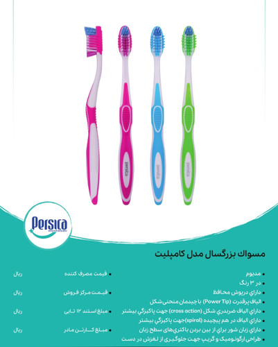مسواک بزرگسال پرسیکا مدل کامپلیت ، بسته ۱۲ عددی
